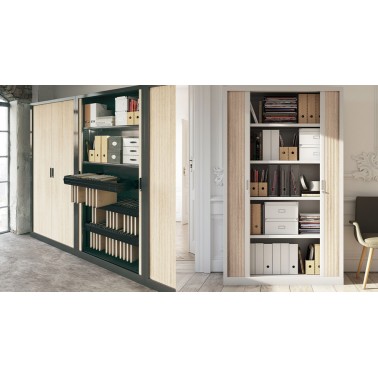 Armario persiana con robusta estructura metálica.