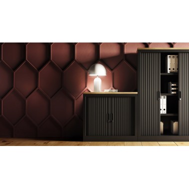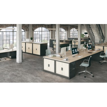 Mobellinea diseña esta colección de armarios metálicos con puertas de persiana como un sistema modular de diferentes tamaños y modelos. Se complementa con la colección clásica de armarios OH Systems con puertas de melamina también en diferentes tamaños y acabados.