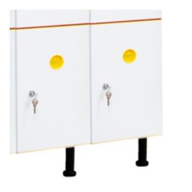 La taquilla de plástico se compone de 2 puertas verticales con espácio suficiente para albergar cualquier elemento u objeto. Esta taquilla ha sido fabricada con resinas plásticas al 100%. Patas de PVC regulables.