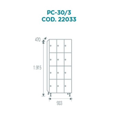 Su estructura se compone de de un grosor en puerta y paredes de 18 mm. Su estructura es de color blanco, no obstante sus puertas pueden ser en diferentes acabados. La puerta del casillero alberga un elemento le proporciona una respiración de modo que no quede cerrado herméticamente y así pueda ventilar. Las dimensiones de la taquilla de vestuario de plástico de megablock, son de 1915 cm de alto x 323 de ancho x 470 de fondo. Siendo así una taquilla práctica y de dimensiones amplias.