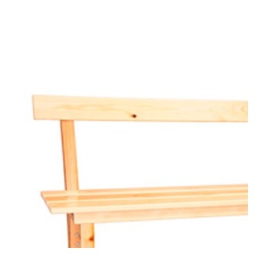 Este banco tiene una estructura con respaldo, asiento y zapatero. Todo ello de madera. El tablon de madera a modo de respaldo es sencillo y útil para cualquier tipo de zona. Su zapatero con dos listones hace que refuerze esta parte, de manera que soportará mayor peso. Su esqueleto de madera completo, alberga robustez y dureza.