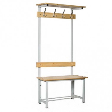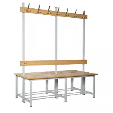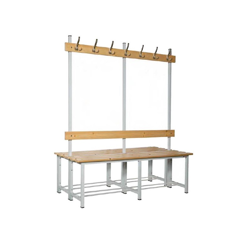 Banco B2-1500 para vestuario con percha. Este tipo de banco con percha es uno de los elementos más reconocidos dentro de un vestuario en cualquier tipo o modalidad de deporte, pues son el preferido por el deportista.