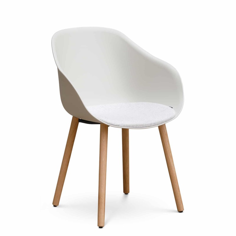 La silla Lore wood, con estructura de 4 patas de roble, cuenta con un gran número de acabados: carcasa de polipropileno con un pad de asiento del mismo material o tapizado, o totalmente tapizada. Todo ello la convierte en una silla cómoda y acogedora, ideal para hogar, aportando calidez al entorno.