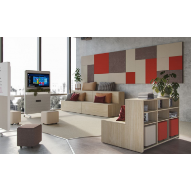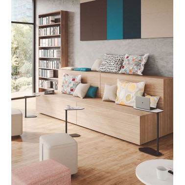 Dispone de ruedas, lo que multiplica su utilidad al aportar dinamismo al espacio de trabajo colaborativo. Permite fácilmente reconfigurar el área de trabajo donde compartir ideas y desarrollar proyectos conjuntos.