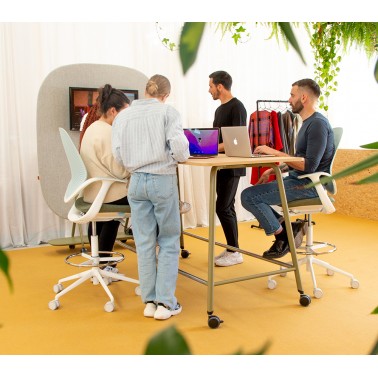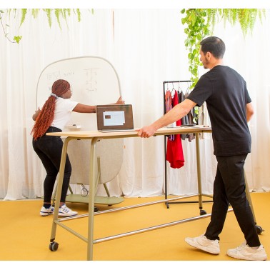 Forma5 lanza la colección de mesas Muvit con ruedas. Una mesa multifuncional para la oficina moderna. Las ruedas aportan versatilidad en un momento que las oficinas se convierten en espacios híbridos dinámicos constantes.