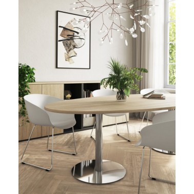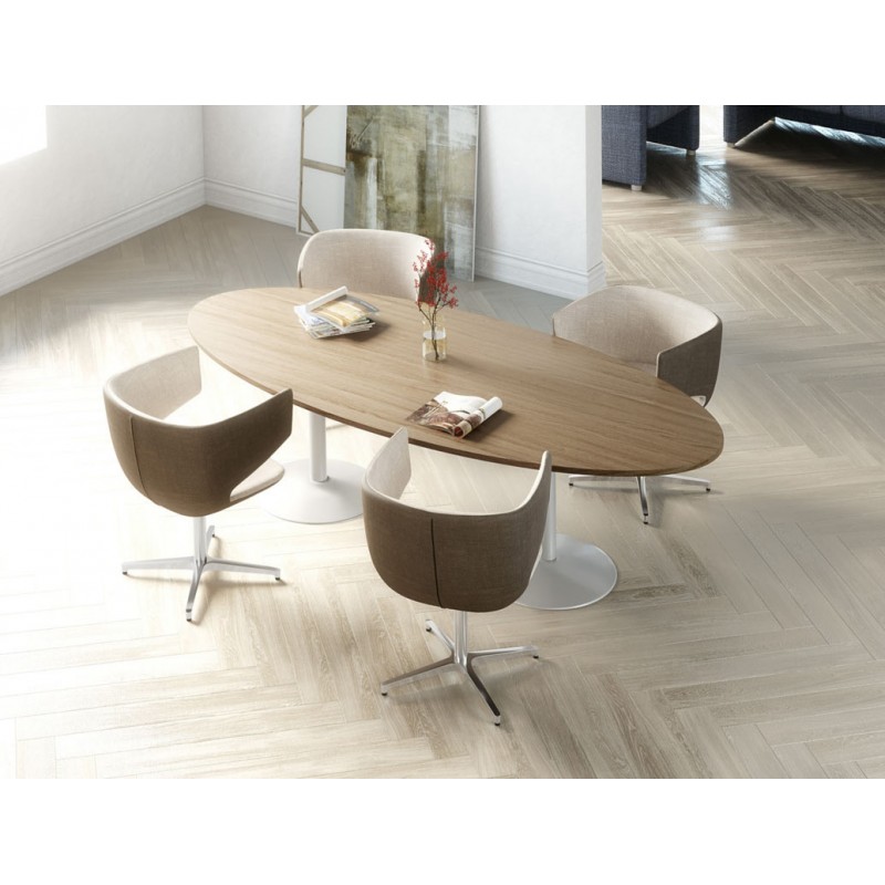 Disponible en formatos redondos u ovalados, Rock favorece la comunicación y la interacción, convirtiéndose en una solución funcional y elegante para reuniones de equipo y espacios de decisión.