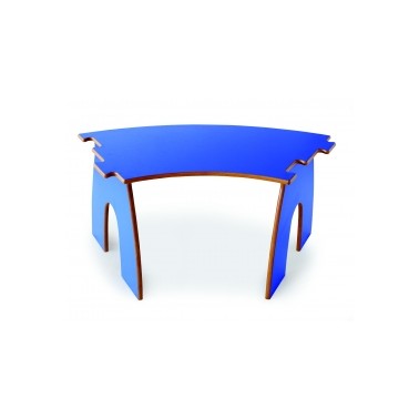 Mesa infantil con tapa y patas en DM laminado alta presión con cantos redondeados barnizados con poliuretano. La unión entre las patas y la tapa se realiza mediante tubo de acero. Diferentes medidas.