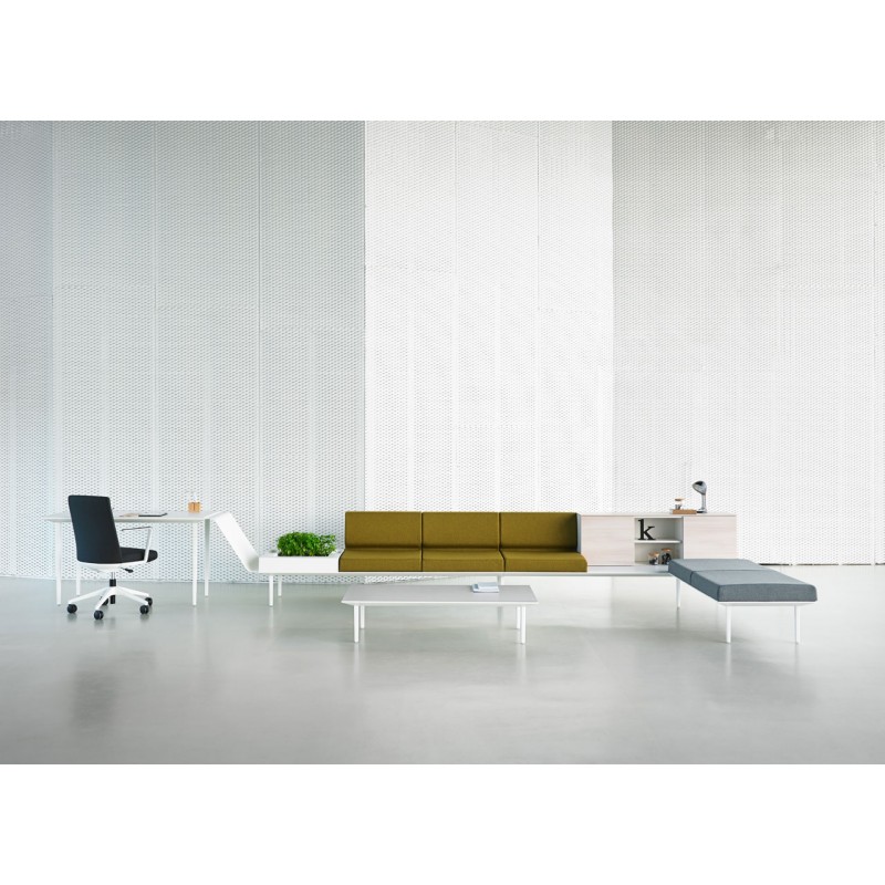 Sofá Actiu de máxima versatilidad. Actiu logra desarrollar un programa de sofá para sala de espera con una estética contemporánea. Líneas suaves para crear espacios llenos de confort, abiertos y amables. Transforma la oficina, el hall o cualquier otro entorno con un toque dinámico. Longo se construye sobre una sólida estructura de aluminio, que ha sido extrusionado. Sobre esta estructura se adaptan patas de aluminio, paneles y muchos otros complementos. Actiu desarrolla un amplio programa en sillas de espera para ofrecer soluciones globales y personales para cualquier espacio. Explica tus necesidades y te damos la solución que necesitas. Con el sofá Longo aúnas funcionalidad y comodidad con un estilo propio muy actual que encaja en cualquier estancia. El sofá Longo se fabrica en diferentes acabados -estructura, tejido, detalles, complementos-. En concreto, este es el modelo sofá Longo Nomáda por excelencia de dos plazas y con respaldo.